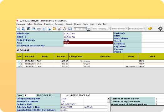 Speed up the delivery process by marking the home delivery bills to delivery boys right from the billing screen. To streamline your delivery operations with 100% automation, experience GoDeliver - a home delivery management app