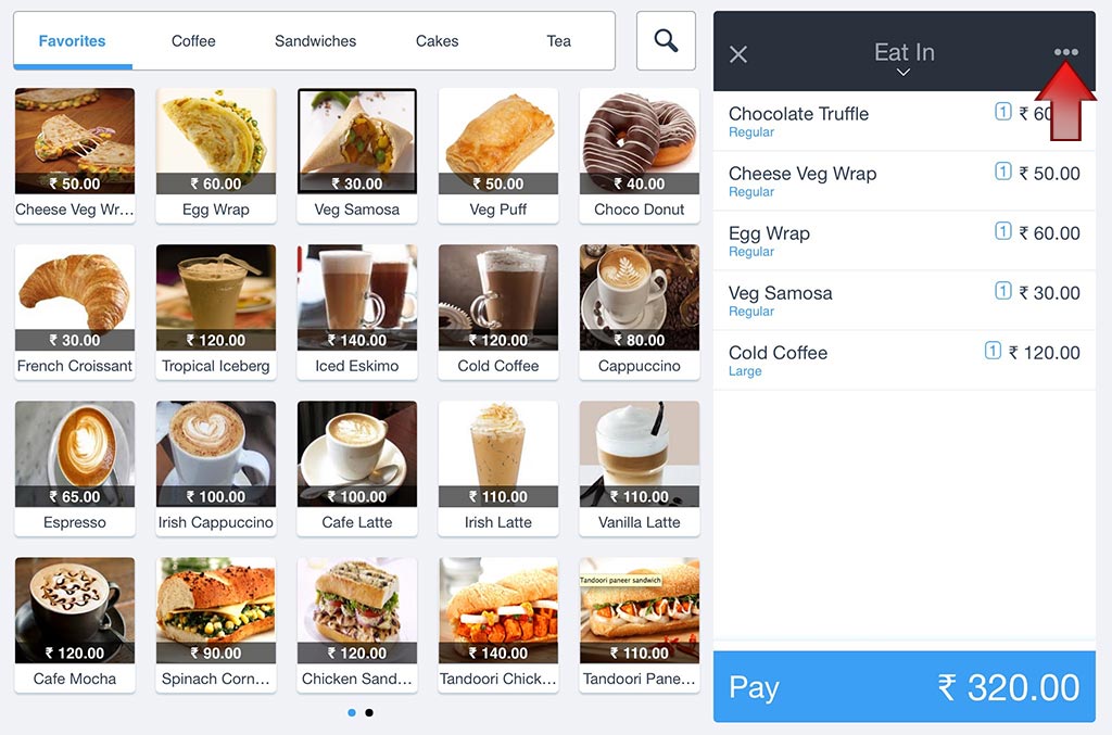 Order screen select ... option available next to the