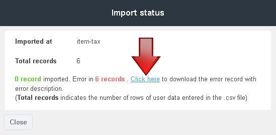 > Import item with tax using csv > Export items with tax using csvImport item with tax using csv