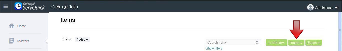 1. Select Masters > Item. An Items screen is displayed. Select Import
