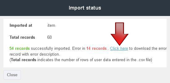 The message box Import status displays as below when the import is done successfully The message box Import status displays as below when an error occurs The error record sheet can be downloaded to understand the nature of the error Note: The same file can be imported after rectifying the errors for a successful import.